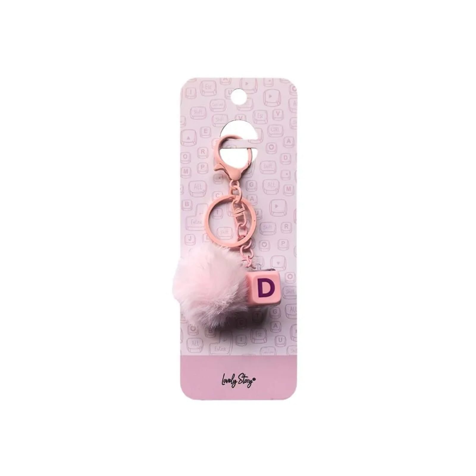 Porta-chaves rosa com pompom e tecla letra D | Lovely Story