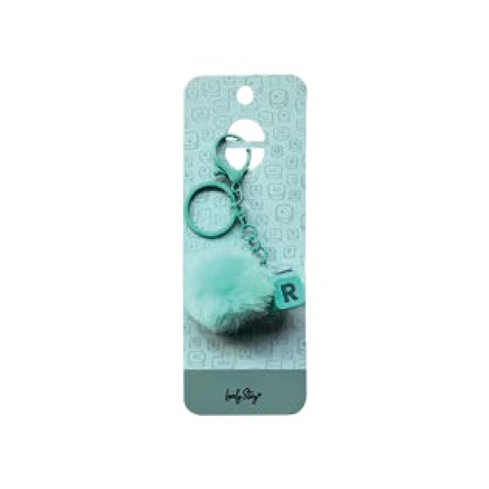 Porta-chaves verde menta com pompom e tecla letra R | Lovely Story