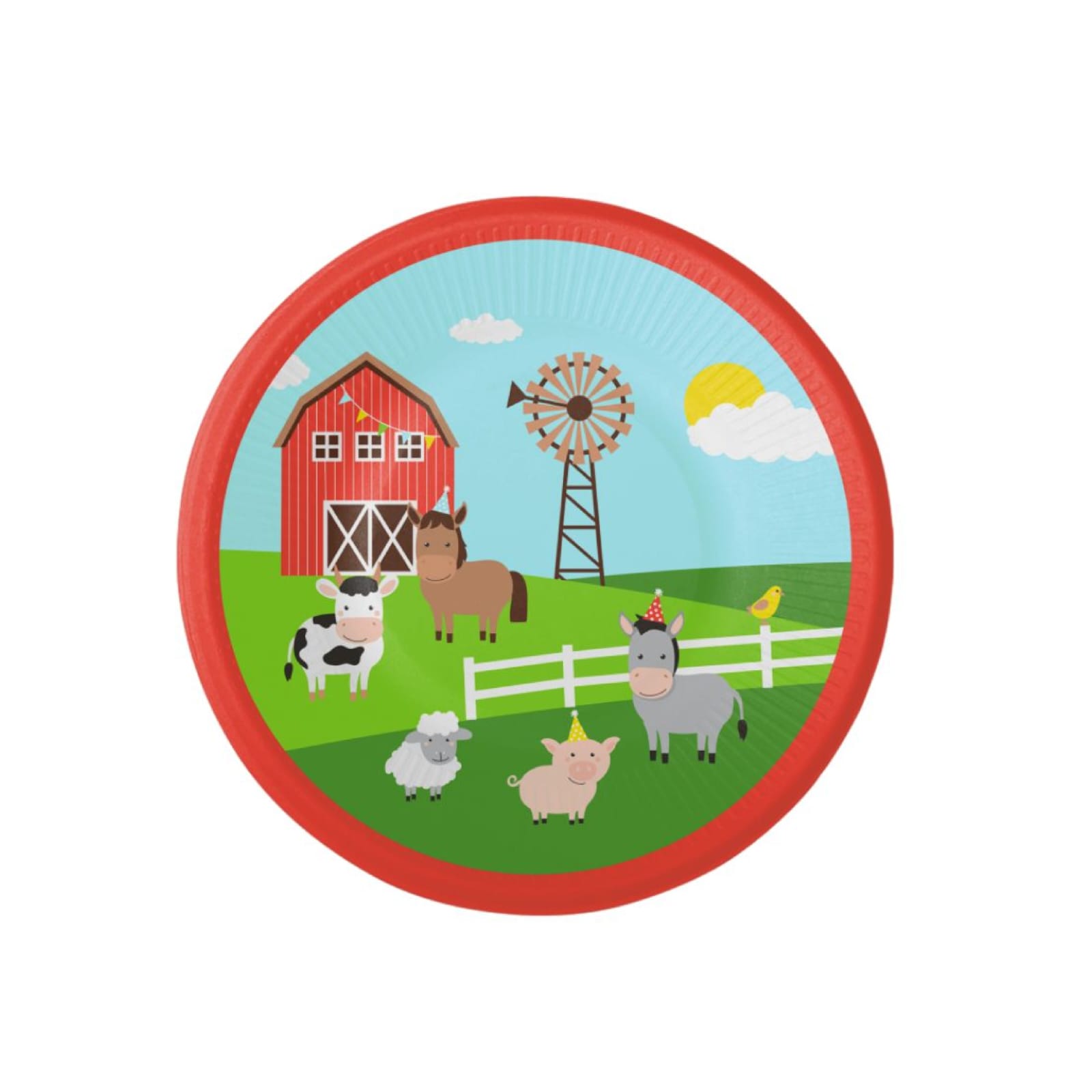 Pratos de Papel Animais da Quinta – 8 Unidades (18cm)