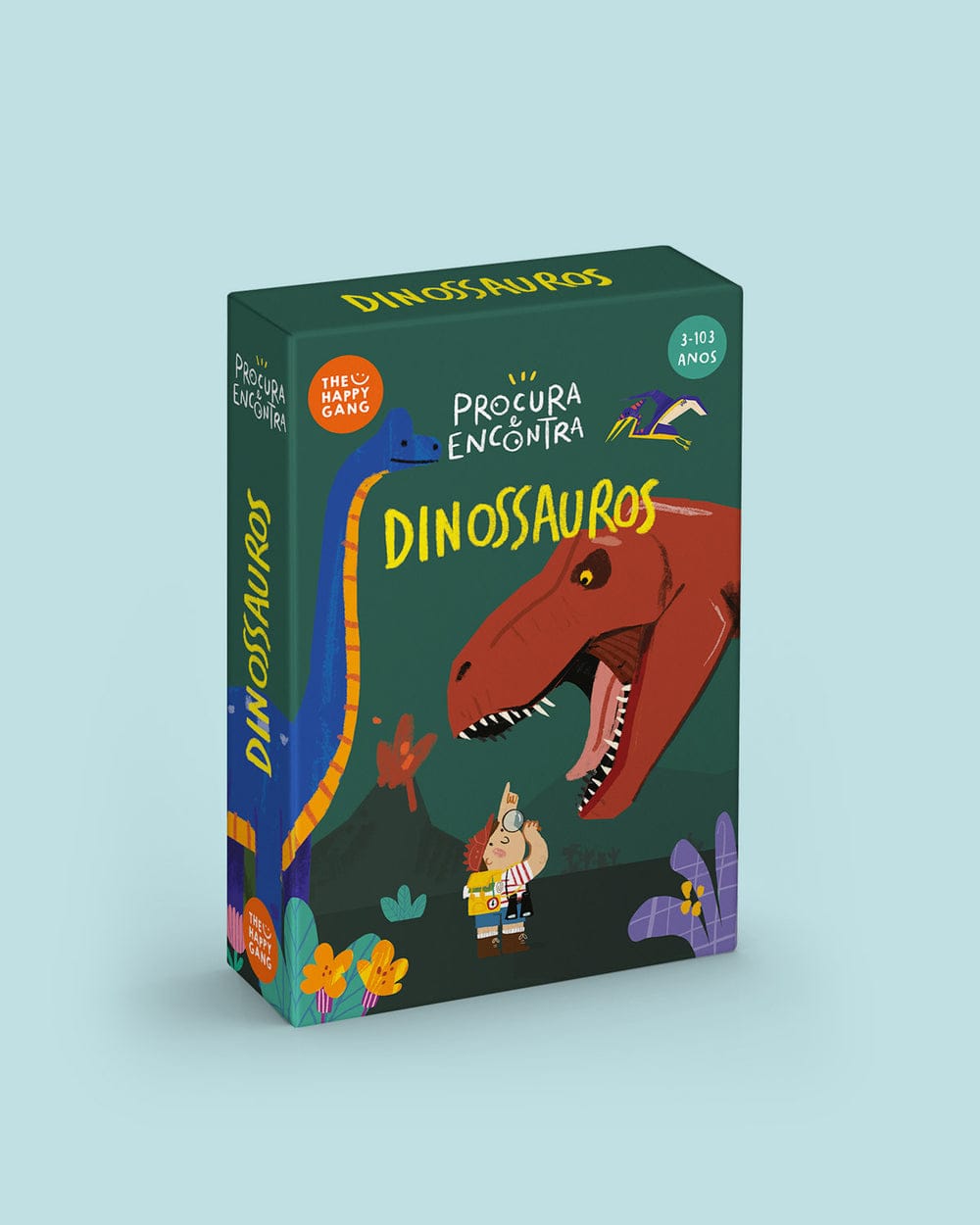 O jogo "Procura e Encontra Dinossauros" da The Happy Gang é um jogo de cartas da Gama "Brain Away", ilustrado por Ana Granado, onde descobres e associas dinossauros em vários cenários. Ideal para treinar a concentração e aprender sobre estas criaturas fascinantes. Perfeito dos 3 a 103 anos, uma forma rápida (15-20 min) e divertida de promover conhecimento e interação em família!