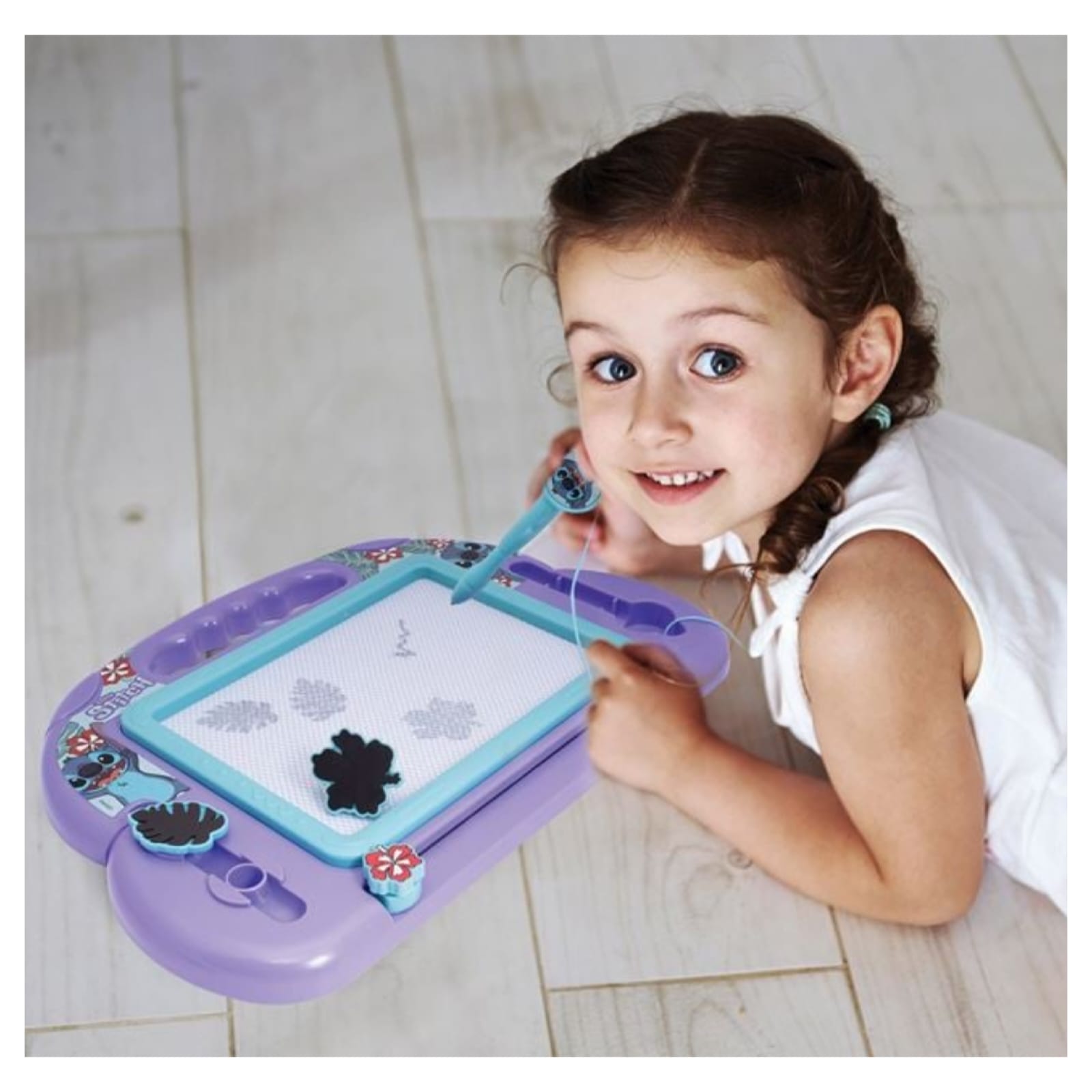 Diverte os mais pequenos com este Quadro Mágico Stitch, perfeito para desenhar, rabiscar e apagar quantas vezes quiserem! Com o design encantador do Stitch, transforma o momento de brincar numa experiência criativa e sem sujar nada.