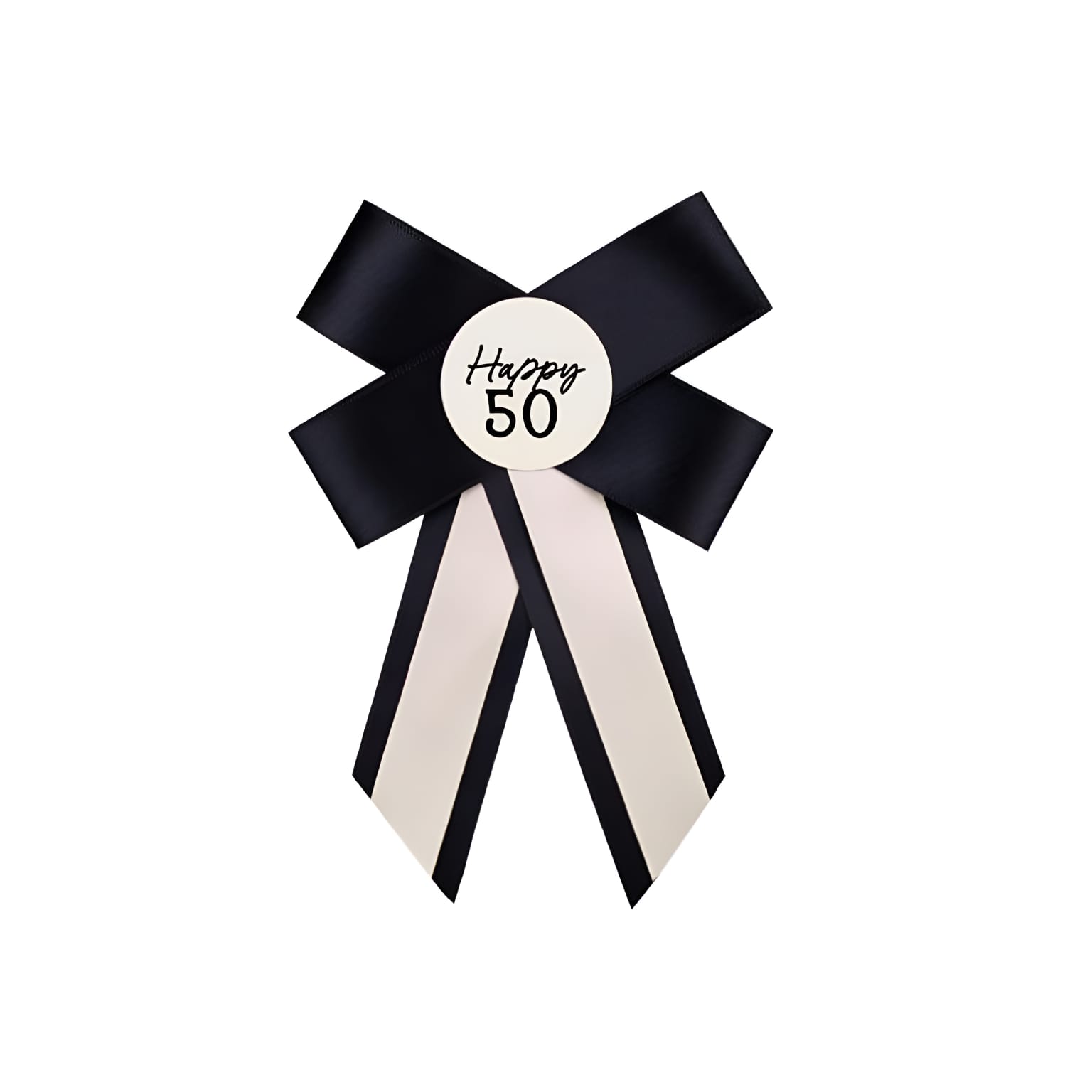 Roseta Pin "Happy 50" em creme e preto da Party Deco