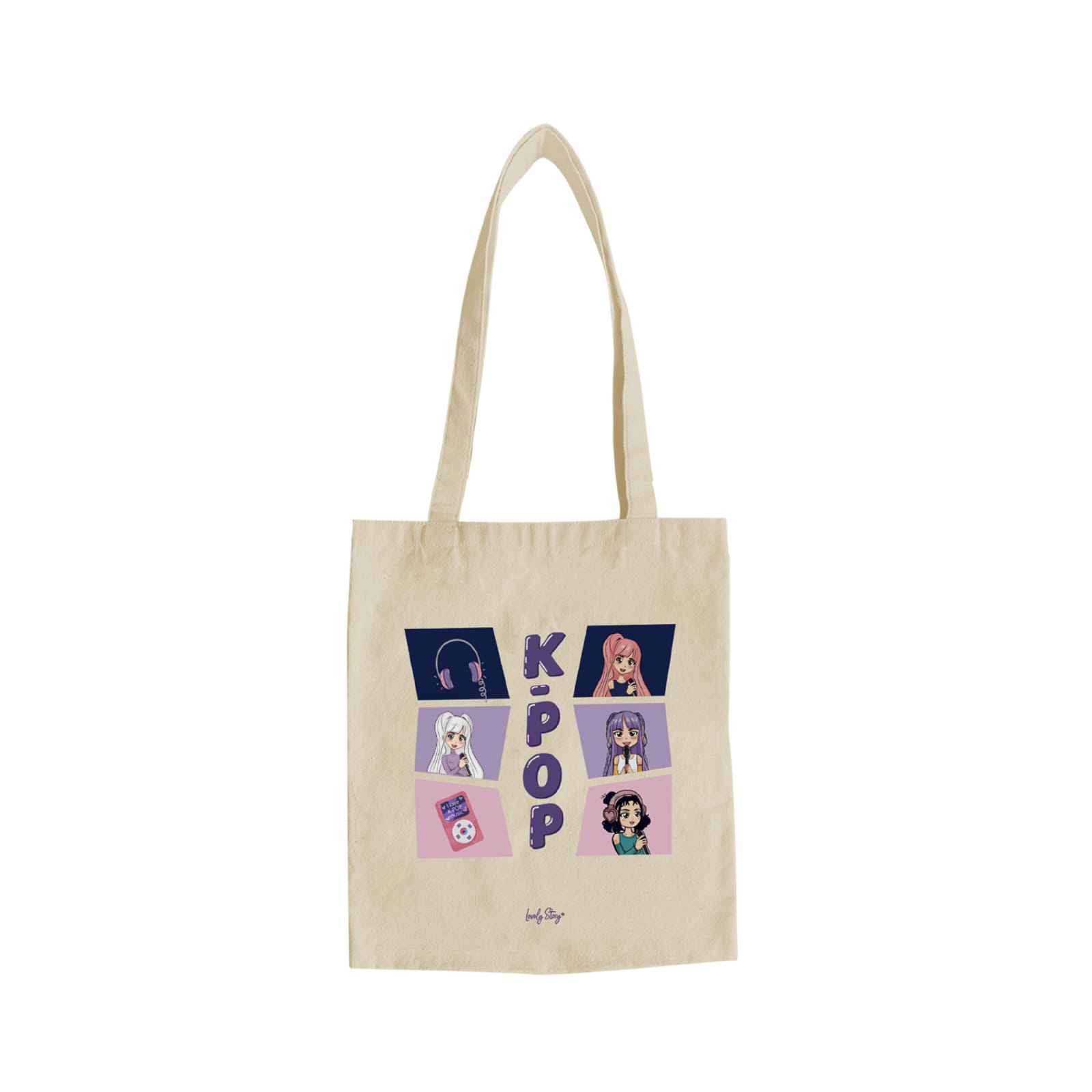 Leve a sua paixão pelo K-Pop para todo o lado com o saco de pano Stars – K-Pop da Lovely Story. Resistente, prático e cheio de estilo, é o acessório ideal para fãs que adoram expressar a sua personalidade no dia a dia.