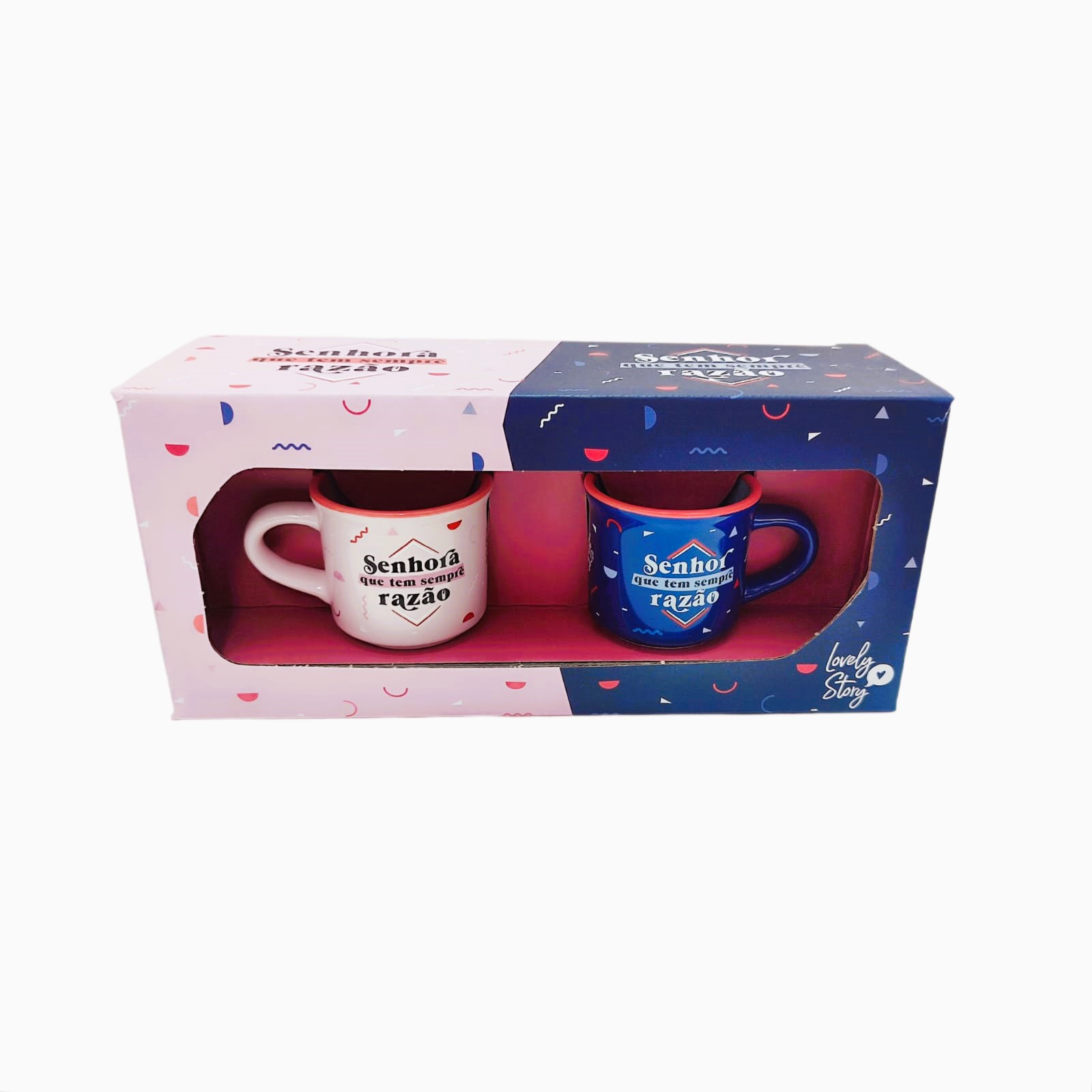 ✨ Características: ✔ Conjunto com 2 chávenas ✔ Frases: “Senhor que tem sempre razão” e “Senhora que tem sempre razão” ✔ Material: Cerâmica ✔ Ideais para café ✔ Marca: Lovely Story