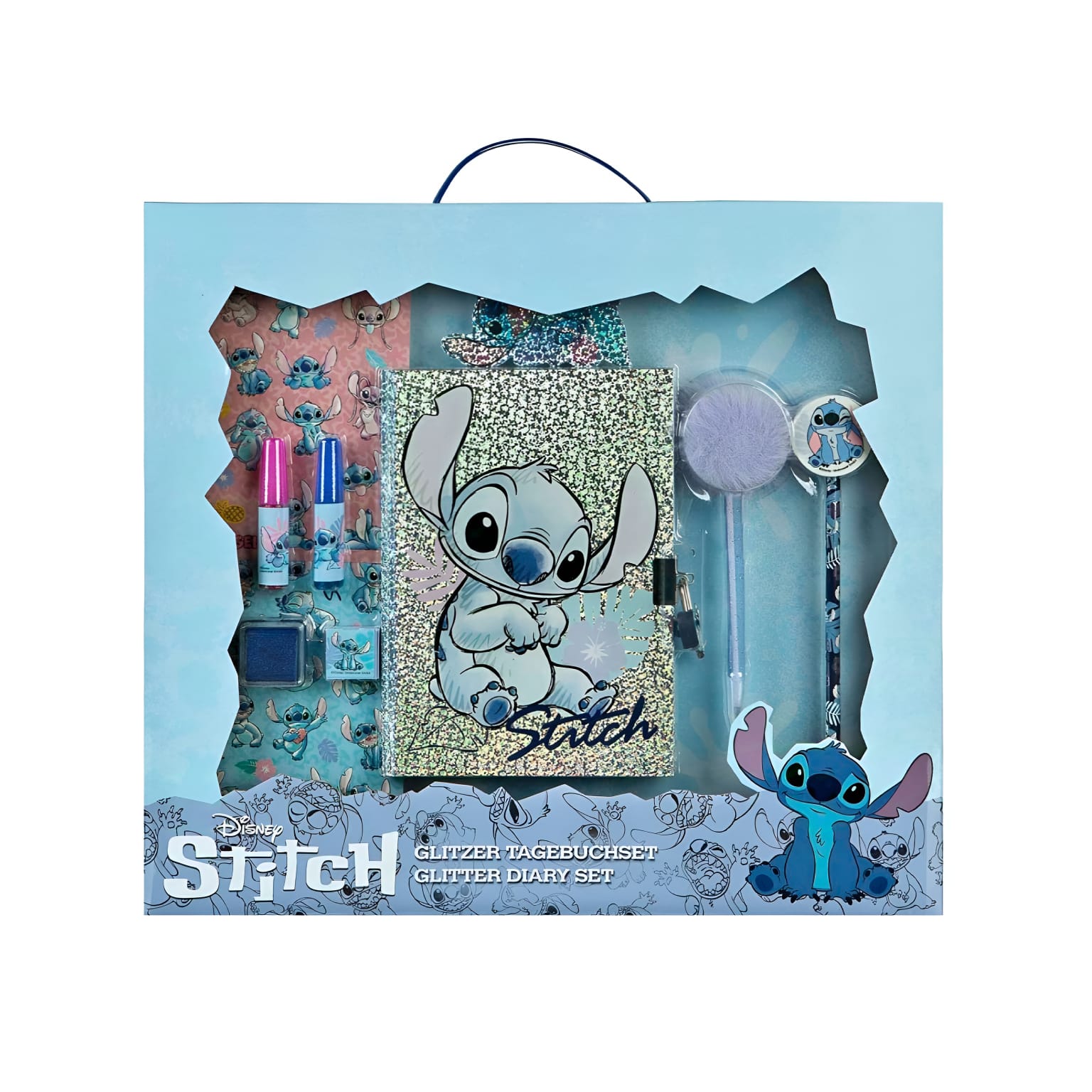 Home Diários e blocos de notas Set diário glitter | Stitch Set diário glitter | Stitch SKU: stli4470 15,99 € Desconto de %. IVA incluído. O produto encontra-se sem stock. Adicionar à wishlist O set contém: Diário glitter com cadeado (em formato de um coração) com 2 chaves 2 colas glitter Carimbo Caneta com pompom Lápis com borracha no topo 2 folhas de stickers 1 sticker metálico Marca Stitch Características Partilhar