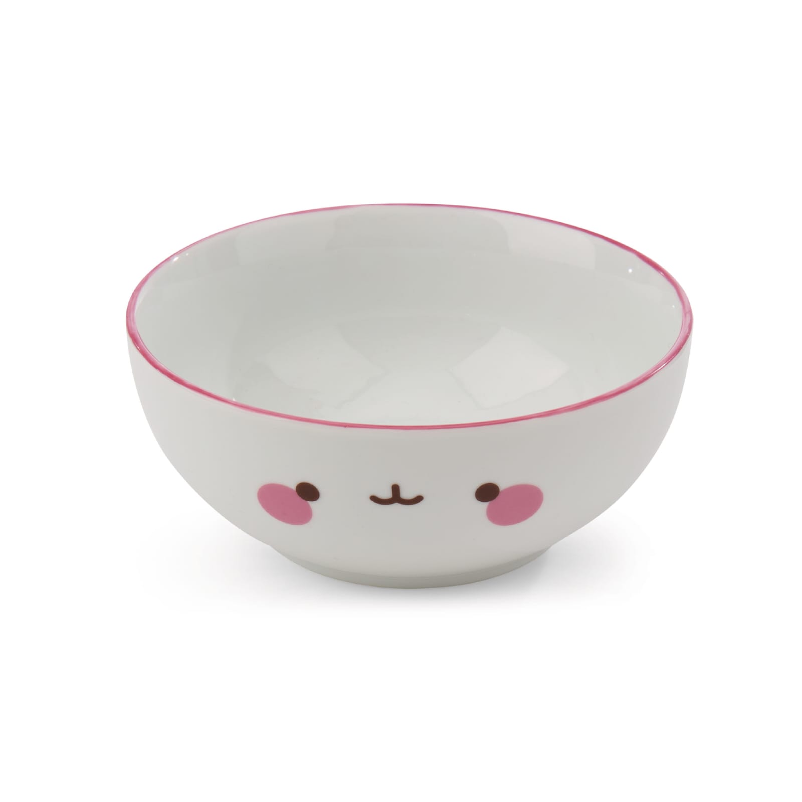 A taça de alta qualidade feita de porcelana branca tem uma borda rosa e retrata o rosto adorável de Molang, o adorável personagem da série de TV de mesmo nome e conhecido nas redes sociais.