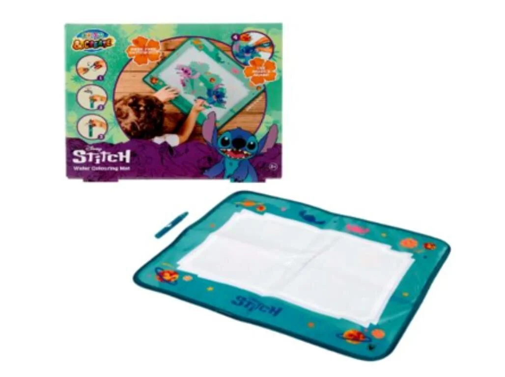 Com este tapete mágico do Stitch, as crianças podem pintar com a caneta especial de água e ver as cores ganharem vida. Após alguns minutos, o desenho desaparece e o tapete fica pronto para criar de novo. Diversão sem fim, prática e limpa!