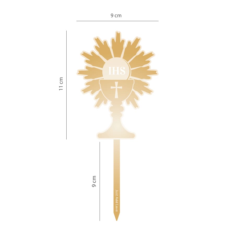 Celebre momentos de Fé com elegância e significado com o Topper Cálice IHS. Perfeito para decorar bolos de Comunhões, Batizados, Profissões de Fé e Crisma, acrescenta um toque delicado, moderno e cheio de simbolismo à sua celebração.