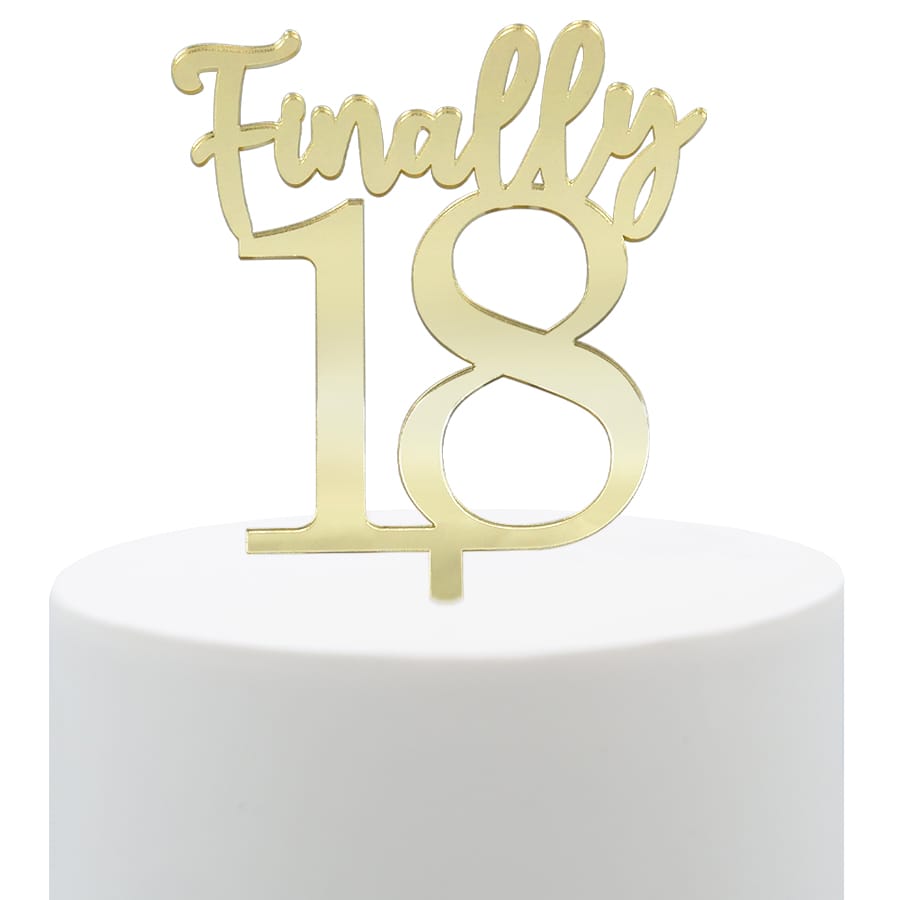 Celebre os inesquecíveis 18 anos com o Topper Ouro “Finally 18”. Com um design elegante e cheio de brilho, é perfeito para destacar o bolo e tornar esta data ainda mais especial.