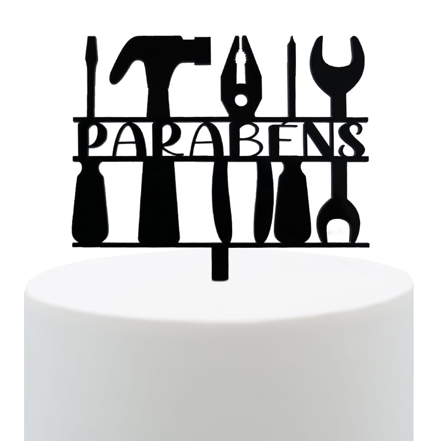 Celebre de forma original com o Topper “Parabéns” Ferramentas! 🔧🎉