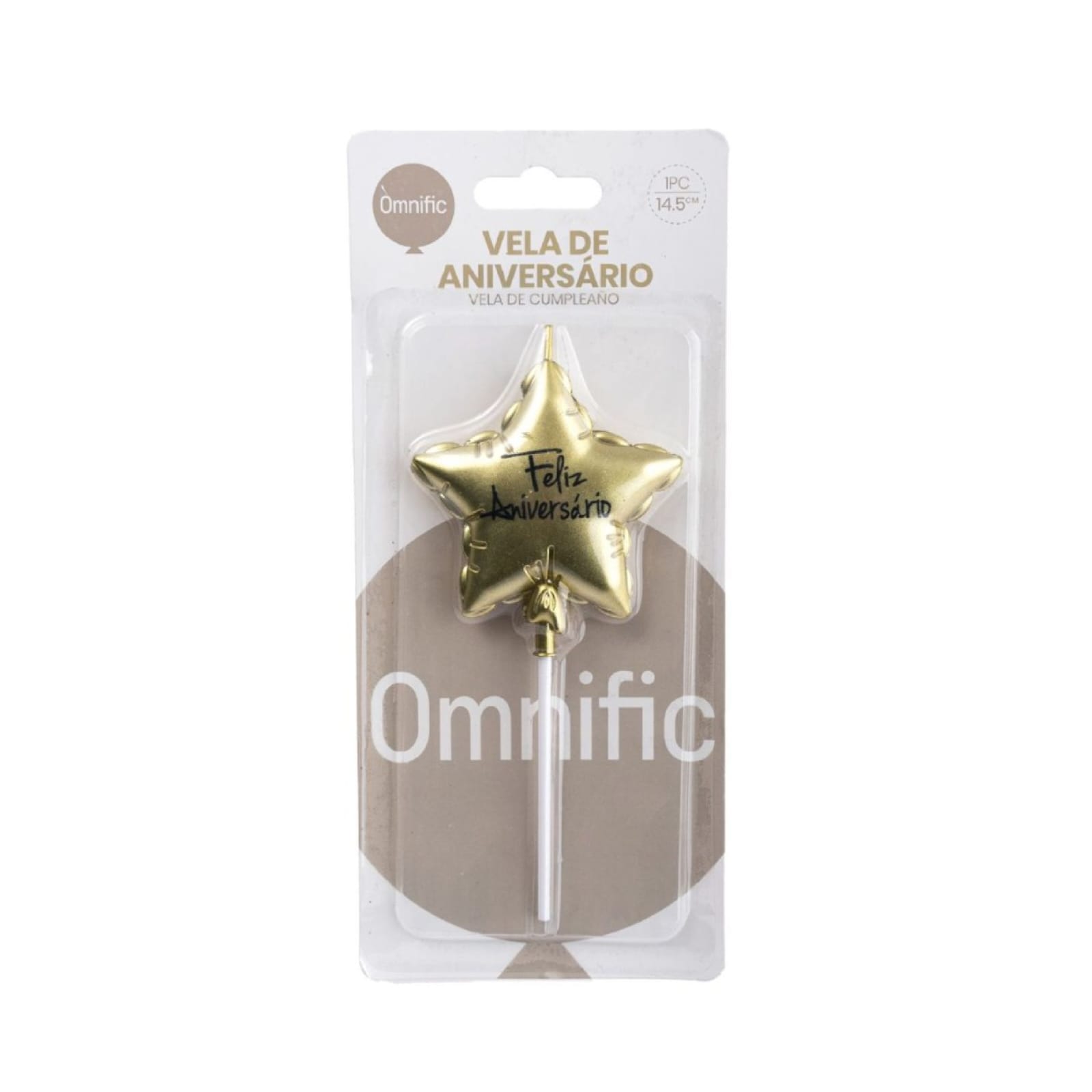 Dê brilho e destaque ao seu bolo com esta elegante vela em formato de estrela dourada com a frase “Feliz Aniversário”. Um detalhe especial que torna o momento ainda mais mágico e memorável.