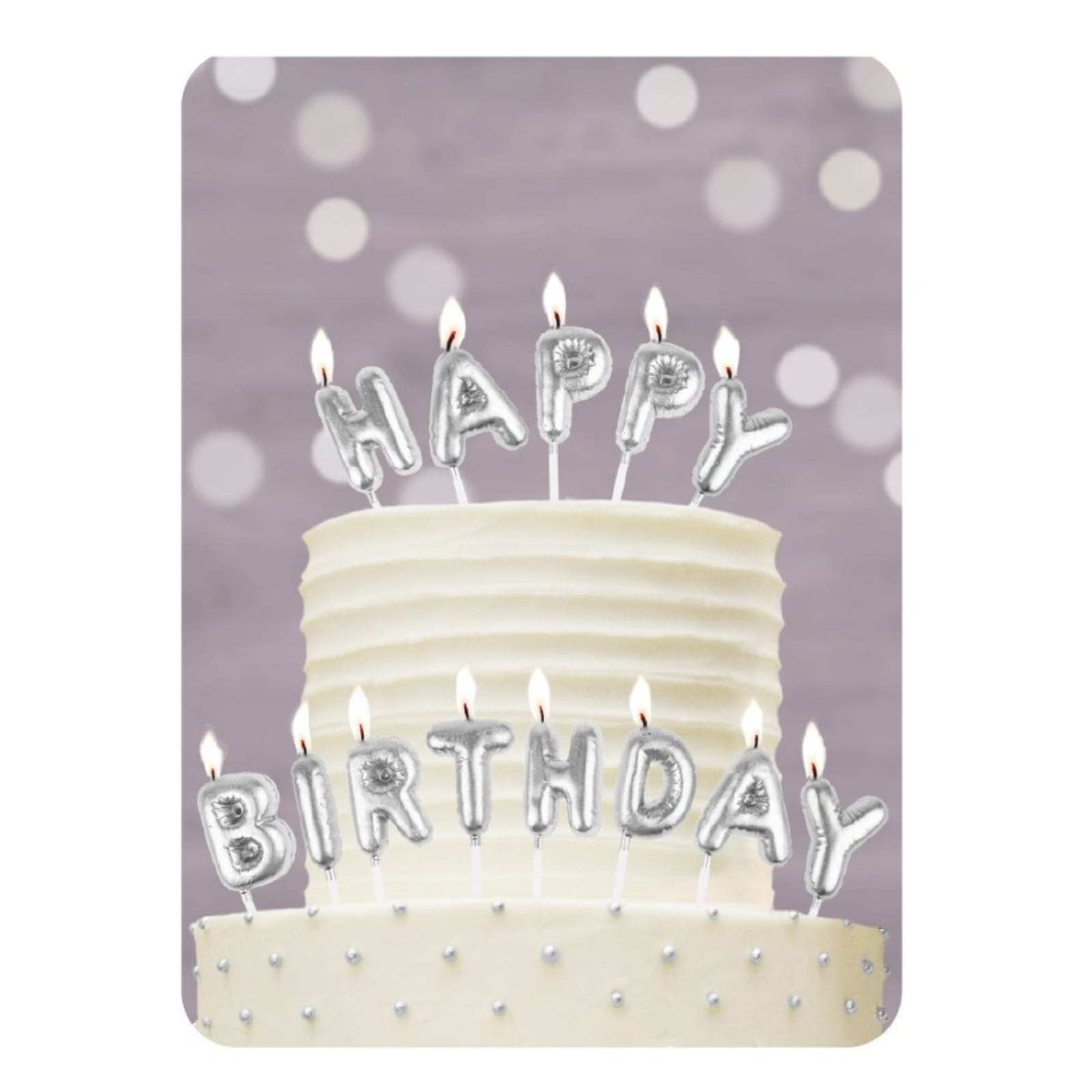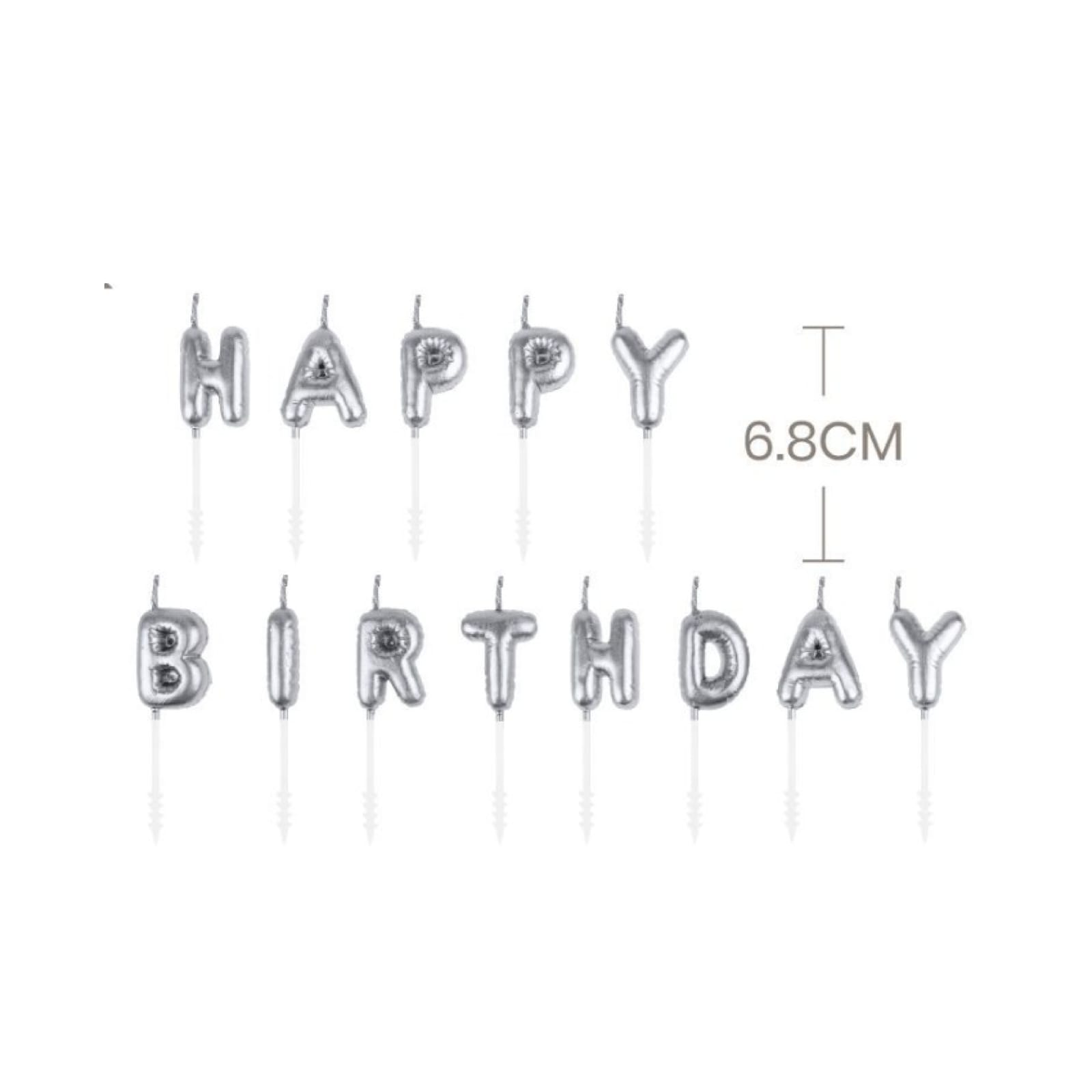 Celebre em grande estilo com estas elegantes velas prateadas “Happy Birthday”. Perfeitas para destacar o bolo e dar um toque moderno e sofisticado à sua festa de aniversário.
